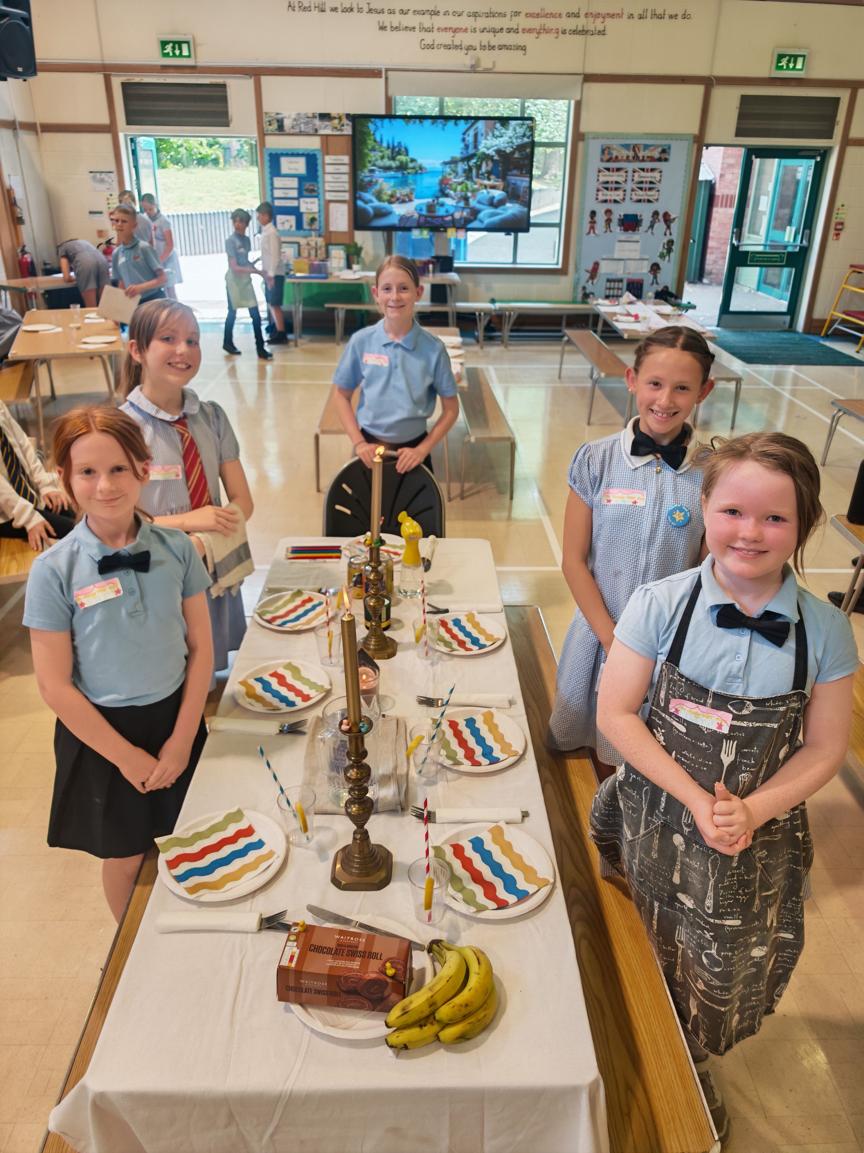 Year 6 used their progression of skills to design, cook and serve an entire meal to their families in a 'Come Dine with Me' style. The parents then evaluated the meals on taste and the children reflected on their cooking techniques.